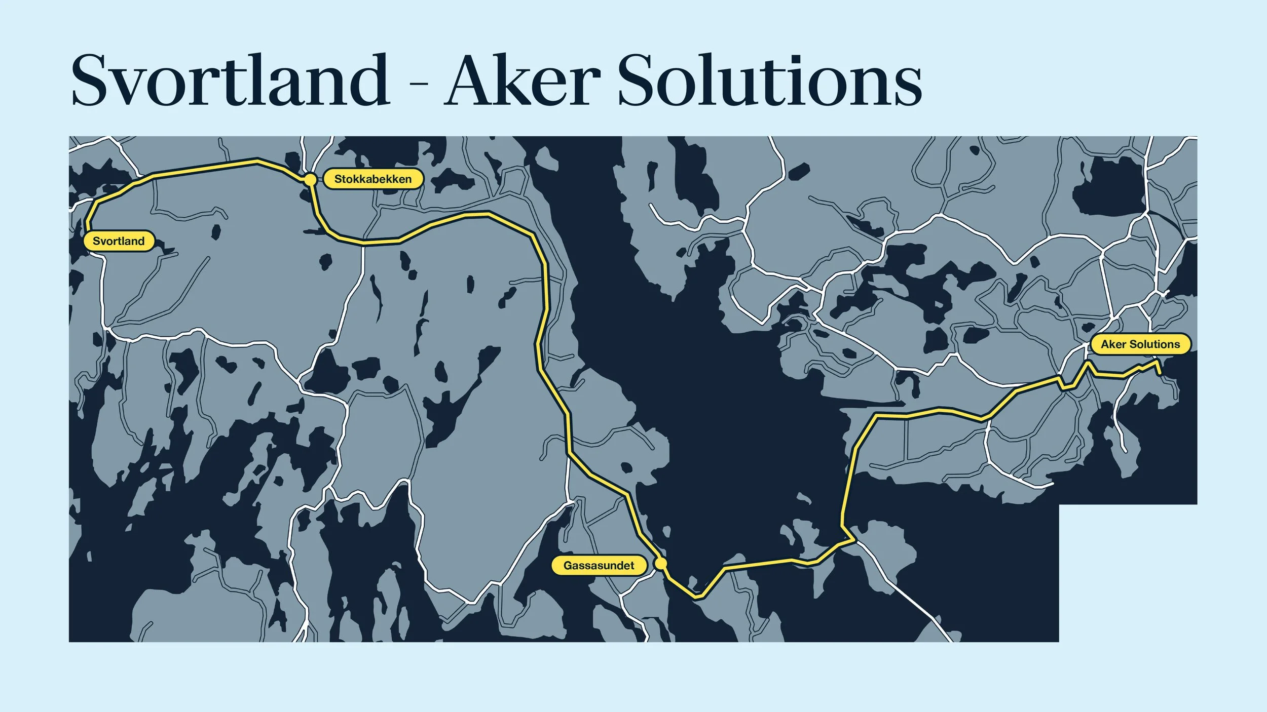 Aker-bussen har fire ruter som den køyrer. Ei som startar i Øklandslio, ei som startar på Vikanes, ei som startar på Svortland, og ei som startar i Hornelandsvågen.